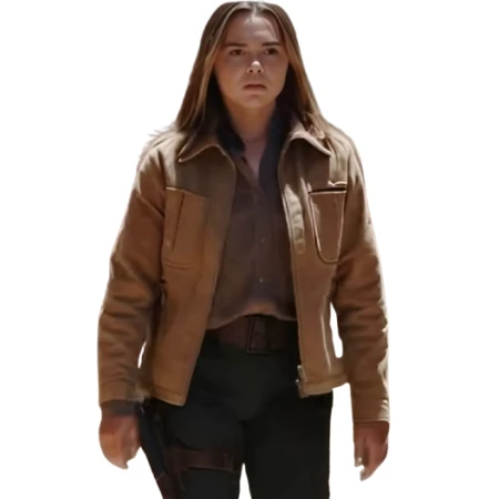 Florence Pugh Sicario 3 2025 Tan Suede Jacket
