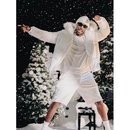 Sidemen Christmas Drillings Ft. JME White Fur Hooded Puffer Jacket