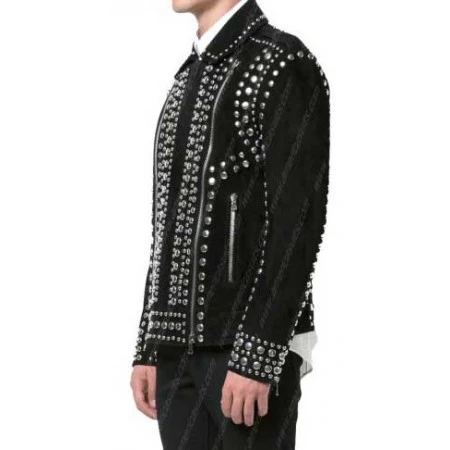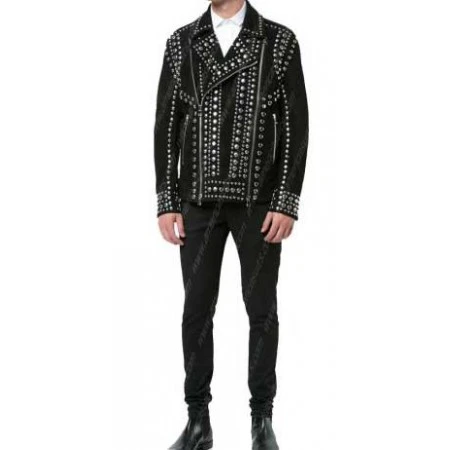 Item Description For Silver Studded Black Rider Leather Jacket: