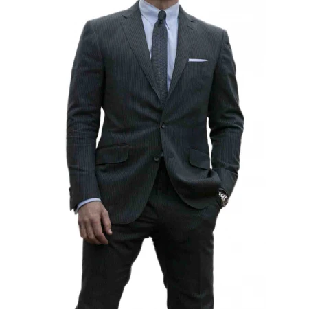 Skyfall Daniel Craig Charcoal Suit makes your early introduction solid with the indication of this fantastic custom-made suit that can add to cleaning your week's worth of work closet and impression your looks. This smart charcoal suit is made with the right blend of customary style and advanced level, which can, without a doubt, improve your appearance. Fabricate through utilizing solid and best quality fabric, this formalwear is motivated by the gathering of Britani's top-class operators who are prestigious for their extraordinary apparel sense. Whiz Daniel Craig was spotted wearing this charcoal pinstripe suit while playing the splendid depiction of Bond in his third and best film, Skyfall. Our master tailors will develop this suit as per your predetermined subtle elements by utilizing their expert aptitudes to transform this suit into only a gem.