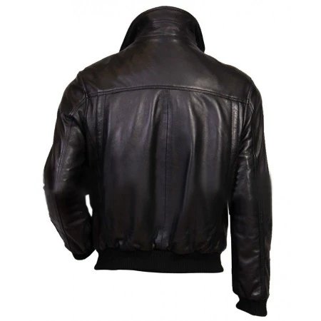 Slim Fit Mens Black Leather Bomber Jacket
