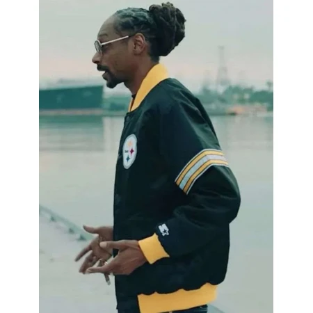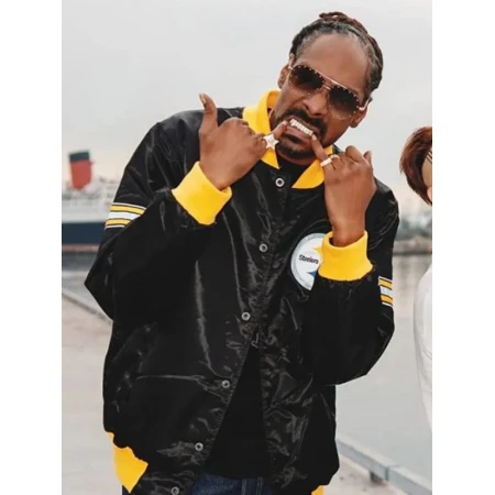 This Snoop Dogg Back In The Game Black Steelers Varsity Jacket is the perfect way to make a statement. Inspired by the iconic rapper, this jacket is sure to be a hit. Featuring a classic black and yellow color scheme, a satin fabric exterior, and a viscose lining, this jacket is both stylish and comfortable. With a buttoned closure, ribbed collar, two waist pockets, and two inside pockets, this jacket is practical and fashionable. So if you're looking for a way to make a statement, this Snoop Dogg Back In The Game Black Steelers Varsity Jacket is a perfect choice.