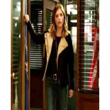 This is a black color jacket whose internal side, finely covered by using a soft shearling material, as clearly seen in the picture. The epaulets present on both of the shoulders along with the wide lapel style collar. A snap tab closing present over a zipper fastening scheme can be left open as well. The sleeves are designed in a long fitted style and hold open hem cuffs at the end. The external covering of Sophia Bush Shearling Jacket is made from real leather.