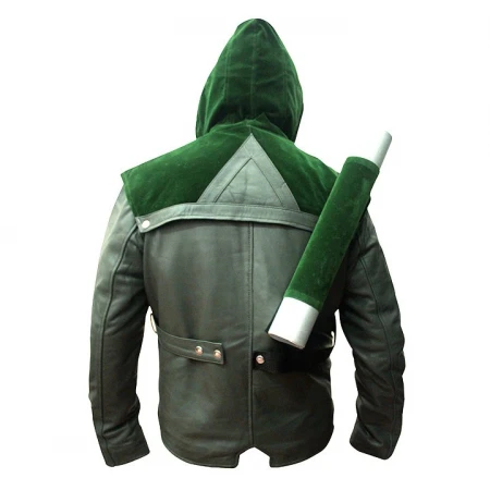 Hit television series Arrow in which Stephen Amell played the role of a superhero as Oliver Queen in the cw series has been noticed by his fans due to the show and of course the costume he wears as every superhero is known for his costume. The Oliver Queen Green Arrow Hoddie Leather jacket became famous quickly due to the unique nature of the jacket. Stephen Amell Green arrow jacket has a hoodie on it with a bow holder in the back and quilted on the shoulders. The Arrow jacket is very populat amongs the teen especially during the Halooween season or costume party and has gathered a number if great reviews in the industry of costumes. The stephen amell green costume comes with all the ornaments as een on the picture and it can be made in either green leather or green faux leather. the costume is made to order for your body and it is one classic collection you must have. Wearing the Arrow hoodie jacket will give the extraordinary powers in the fantasy land and will help you bring the confidence level up as a Arrow team member and fan. So don't wait and order now