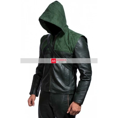 One of the best TV series of all the and one of the best costume everlasting Stephen Amell Green Arrow Leather Hoodie Jacket is now on sale from americasuits.com. The only Green Arrow jacket that comes with an arrow holder and all you need is a bow and handful of arrows. Stephen Amell played Oliver Green in Arrow TV series. Wearing this Oliver green jacket will take you to the fantasy land where you can be a hero. The jacket is as described and made up of genuine leather and velvet combination with arrow holder in the back. The Green Arrow jacket is removable and the front of the jacket is quilted, we pay attention to detail and this green arrow jacket will make a happy customer