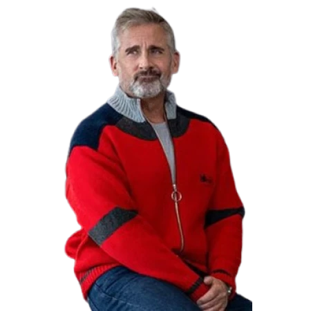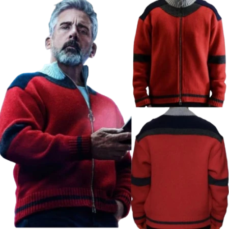 Bring warmth, wit, and refined comfort to your wardrobe with the Steve Carell Red Jacket, inspired by his easygoing look as Randall in the upcoming film Mountainhead. If you’ve been hunting for a Mountainhead fleece jacket that feels great off camera, this one settles into real life fast—light enough to layer, warm enough to take the edge off, and relaxed in a way that doesn’t look sloppy.