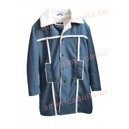 Stranger Things S04 Murray Bauman Coat This coat is inspired by the character Murray Bauman from the Netflix series. STRANGER THINGS SEASON 4 MURRAY BAUMAN COAT! This coat is made of soft suede leather and will become your new favorite. It features a buttoned closure, turn-down style collar, and open hem cuffs. The blue color is perfect for any outfit.