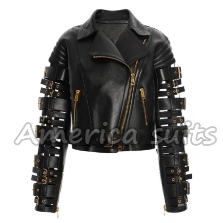 Eye getting dark shading of Straps and Buckles Zendaya Coleman Jacket alongside cushioned configuration component on upper arm make it remarkable attire. Two brilliant zippers pockets on waist alongside smart belt and clasp for fitting upgrade your magnificence. Long sleeves and back of coat compliment with interesting style belt and clasp enhanced with press studs is the key component that acquires you the focal point of consideration when you wear Zendaya Coleman Black Leather Jacket.