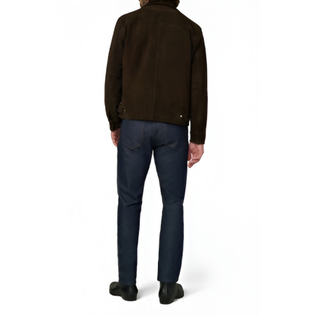 Rich dark brown suede covers the jacket, with a soft, natural texture and depth that doesn’t demand attention. The inside is finished in smooth viscose lining to enable the jacket to easily slide over layers of clothing while still keeping the pure line of the jacket silhouette. The classic balance of all the characteristics of the design is achieved by a shirt collar, while the zipper in front adds a practical and polished appearance to it.