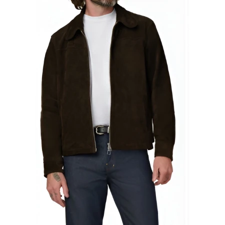 The Suede Brown Jacket is designed for those who value understated elegance, is inspired by and worn by Leonardo DiCaprio. It easily fits into the everyday life of a person, as it is equally comfortable with relaxed evenings out as it is with well-thought-out daytime looks, providing comfort and confidence. This is for the ones who treasure classic design and the beautiful ageing of garments with wear.