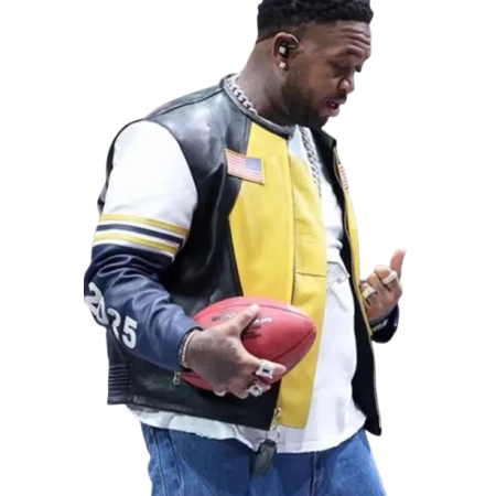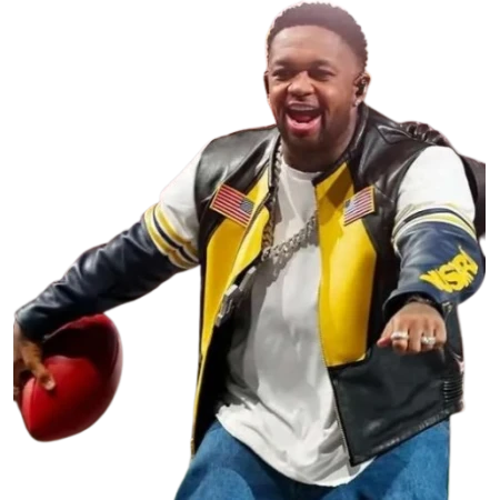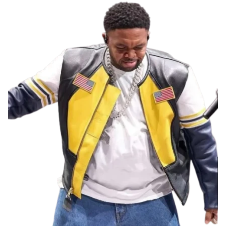 Super Bowl LIX Halftime Show Mustard Black And Yellow Leather Jacket