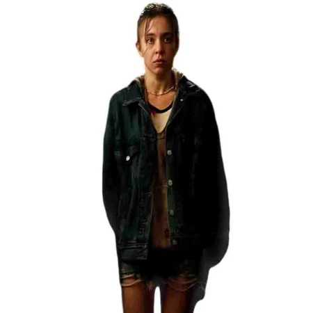 Channel Sydney Sweeney's style with the Sydney Sweeney Echo Valley Black Jacket. Inspired by her artistic nature and signature look in Echo Valley, this jacket is crafted with light denim fabric and smooth viscose lining for a relaxed fit and comfort. By featuring full-length sleeves, and buttoned closure, this black denim jacket checks all the boxes for durability and an adjustable fit. The lapel collar adds sophistication while the pockets provide storage to carry the essentials. If you are a fan of Sydney Sweeney, looking for a women's jacket, or simply wanting to channel your inner celebrity-inspired fashion enthusiast, then this black denim jacket is a must-have. With its versatile color and effortless edge this denim jacket is a perfect streetwear outfit. Purchase this jacket from America Suits and enhance your wardrobe.
