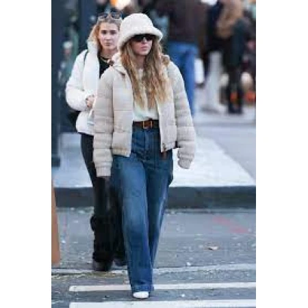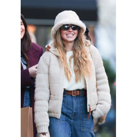 Inspired by modern fashion style, this Sydney Sweeney New York Style puffer jacket is a must-have for fashion enthusiasts. Built with high-quality parachute fabric and soft viscose for warmth and coziness, this Sydney Sweeney Puffer jacket is a must-have for cold weather. The lapel collar and zipper closure provide sophistication and a well-tailored look while two pockets at the front enhance its functionality, making it perfect for carrying the essentials. The full-length sleeves ensure full arm coverage to keep you cozy. Sydney Sweeney is renowned for her iconic presence in the industry and impeccable fashion style, and the puffer jacket is a perfect example of her fashion choices. Purchase this stylish women's cream coat from America Suits and create a fashion statement wherever you go.