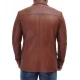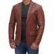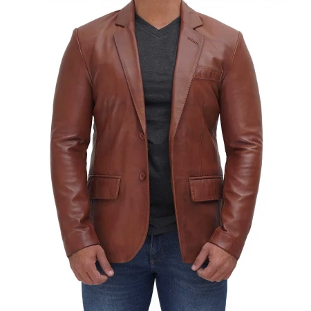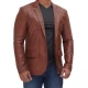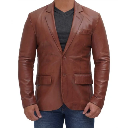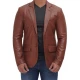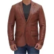 Men Tan Notch Lapel Two Button Leather Blazer