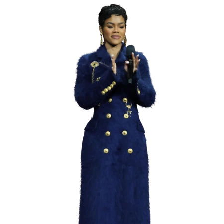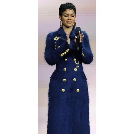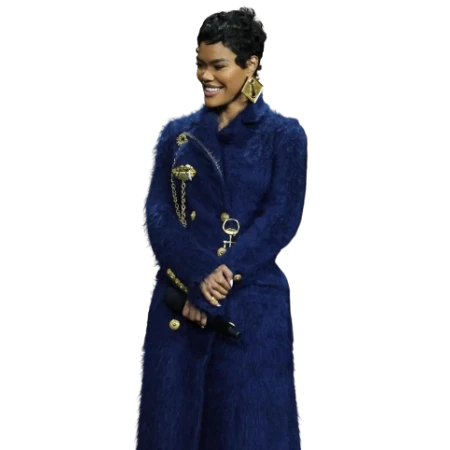 Do you want to make an appearance without saying a word? The Teyana Taylor One Battle After Another Blue Fur Coat is how you do it. This coat is not your