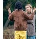This Katherine Waterston jacket is brown. Talking about the pockets, there are two waists and one inside pocket available that provide more storage. Full-length sleeves add more elegance to this modern attire. This trendy jacket will suit any casual dress and add a more stylish look.