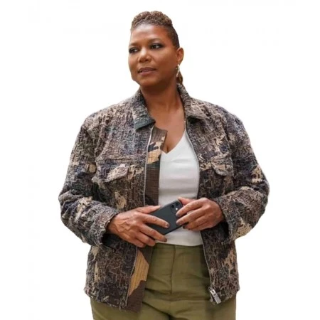 . Queen Latifah Print Jacket zipper-style closure is a practical feature that allows McCall to easily take the jacket on and off as needed. It also adds a touch of edginess to the overall look, reflecting McCall's tough and determined personality. The zipper closure also provides added protection against the elements, helping to keep McCall warm and dry during her missions. The jacket's design is a testament to the attention to detail that goes into the wardrobe choices on The Equalizer. McCall's style is both practical and stylish, reflecting her ability to balance function and fashion. The brown fleece jacket with a zipper-style closure is just one example of the many looks that have made McCall a fashion icon on the show.