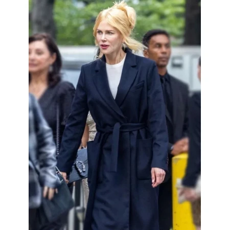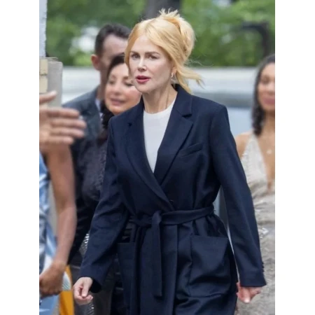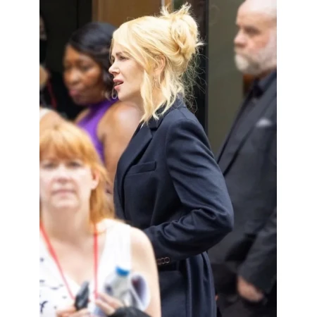 "The Family Affair" Nicole Kidman's Coat features a sleek and tailored silhouette that flatters every body type. The clean lines and minimalistic design exude sophistication, making it a perfect choice for both formal occasions and everyday wear. The coat's classic collar and button-front closure add a touch of timeless charm, while the carefully crafted details showcase the brand's commitment to superior quality. Versatile and easy to style, this coat pairs effortlessly with a variety of outfits, from casual ensembles to more formal attire. Layer it over a tailored dress for a chic and polished look or throw it on over a sweater and jeans for a cozy yet stylish outfit. No matter how you choose to wear it, "The Family Affair" Nicole Kidman Coat is sure to elevate your fashion game.