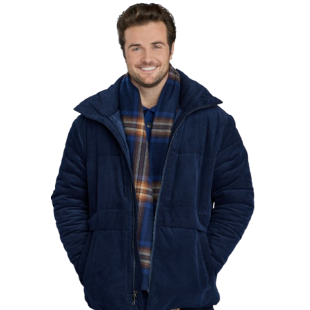 Are you good to go for celebrity-like winter attire? Beau Mirchoff Blue Corduroy Jacket of the The Finnish Line is in stock at America Suits. This fashionable and warm product is not one to be missed; purchase it online now and bring confidence to your winter outfits!