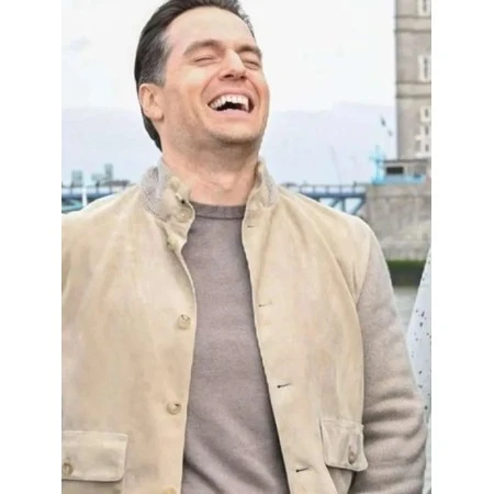 The jacket is made from winter clothing and viscose inner lining to exhibit warmth and comfort. A stand-up prominent collar with front closure as buttons are placed on the front of the Henry Cavill Jacket. Due to light shades, this jacket has a quality to fit with any other layers of clothing.