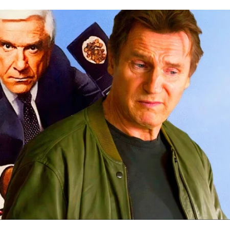 Frank Drebin Jr, The Naked Gun, Liam Neeso,n Green Bomber Jacket