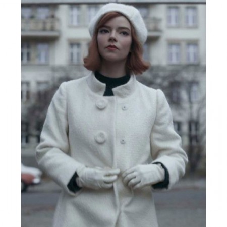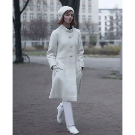 The idea of The Queen's Gambit Anya Taylor Joy White Coat that you are seeing here is taken from 2020 released coming of age period drama miniseries, The Queen's Gambit. The storyline of this series is based on Walter Tevis's 1983 novel of the same name.