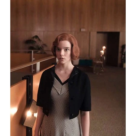 If you watch the series, you definitely get in love with the dressing styles of Anya Taylor. Here we present one of her inspired most beautiful The Queen’s Gambit Beth Harmon Cropped Jacket. This is a cropped style jacket that will be easily wearable during the summer season too because of all the amazing features. Let's discuss them! Instead of full length or ordinary style sleeves, it has medium length sleeves. The pure cotton fabricated external side allows you to wear it during any of your favorite seasons. Beth Harmon Jacket contains a small notch lapel style collar, reaches down to the level of a button fastening closing. Available in a fantastic shade of black color!