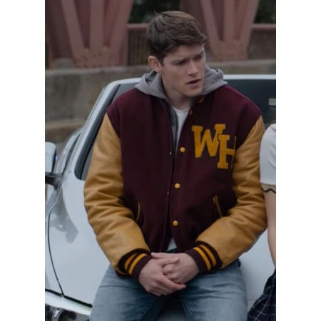 A fascinating combination of maroon and mustard colors played a vital role in increasing the beauty of the Jason Letterman Jacket. A logo of WH designed on the front chest side in the same mustard color. A round shape rib-knitted neckline convenient to wear on a daily basis. The cuffs of full-length sleeves and hemline as well are featured in a rib-knitted style. The front side holds a snap tab fastening button scheme for closing and opening purposes. Thus Maroon And Mustard Jacket does not have any pocket on the internal side but the outer side holds two welted pockets on the waist. Inner side specifications include a soothing viscose lining, for making you feel at ease. Order now to make it yours before it's too late!