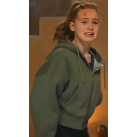 Made of a premium fleece fabric, Madelaine Petsch's Hoodie is soft, warm, and light for wrap-ups or just bold statements on its own. The deep green is quite evocative of the suspense theme present in The Strangers: Chapter 2. The characteristics consist of a front zipper with pockets and a classic hoodie design with drawstrings, blending style and utility.