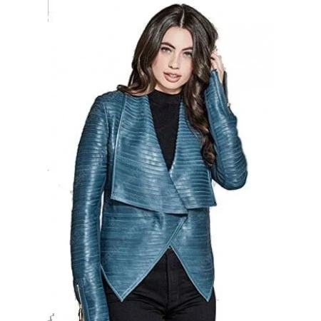 The Allison Blue Jacket is unique and crafted by our top designers. The Umbrella Academy Ellen Page jacket has a quilted style collar which is followed by an open closure. The sleeves of the women's blue leather jacket are full in length with zippered cuffs.