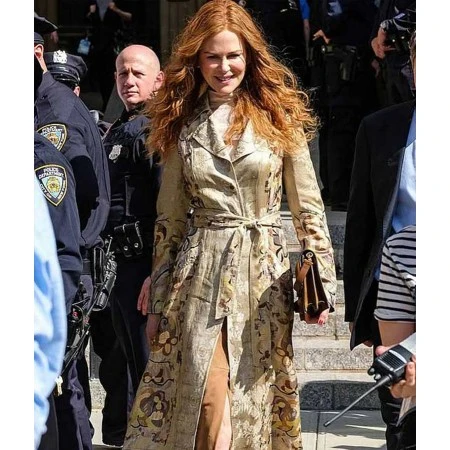 Made just for you This Undoing Nicole Kidman Floral Coat is printed on fine quality velvet. It comes in all sizes and the print is accurate as well, Wearing this grace sache printed floral coat will be like living a luxury life, and the elegance of the Nicole Kidman coat is just perfect for anybody. Buy now online and get free delivery worldwide
