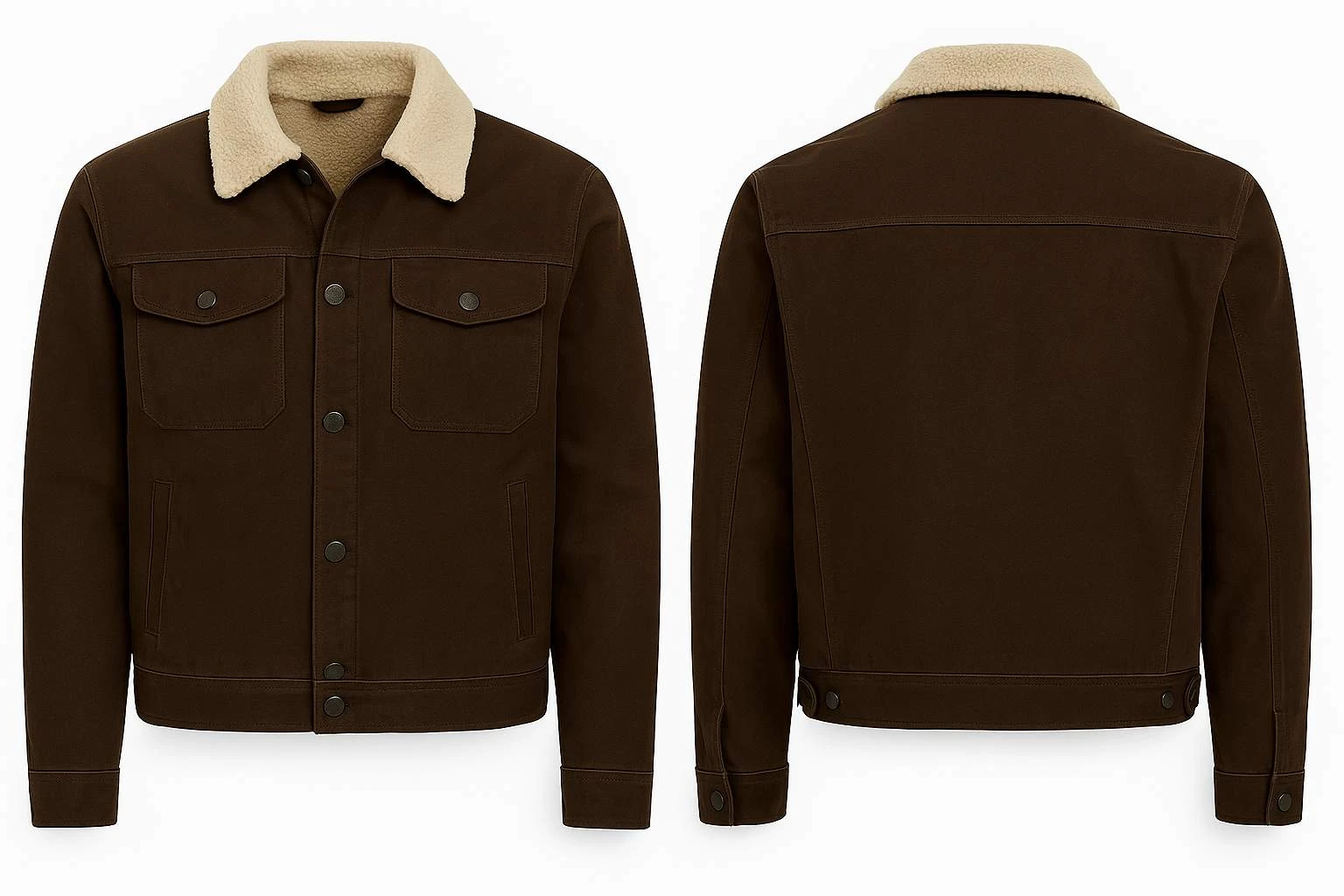 The light beige faux shearling collar adds a twist of warmth and contrast, while full-length sleeves with adjustable snap tabs, front full-zip with snap-button closure, and open hem cuffs create ease of fit as we want. Brown is one color that gives it a very classic and timeless appeal, making the jacket very versatile.