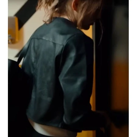 Sophie Cookson This Time Next Year jacket is meant for those who appreciate a fine-tailored cut as it comes with full-length sleeves and open cuffs at the hemline. This shirt comes with no collar at all and this adds to its elegant look. Fixed pockets on both sides add utility, as one can put the necessities in easily. Hint, in addition to having a comfortable feel on the skin due to its soft viscose lining. A great fit for everyday use or a special event, this black leather jacket is ideal for anyone who enjoys black leather jackets as staple pieces of clothing.
