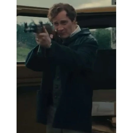 Embrace sophistication with the This Town S01 Eamonn Blue Coat. The coat gives a very luxurious touch because it is crafted with leather and premium fabric. This fabric mixture helps in providing comfort. While a viscose lining adds softness. A lapel collar with button closure adds functionality to the design of this Peter McDonald coat. It is available in a captivating blue color which adds more sophistication to your outfit.