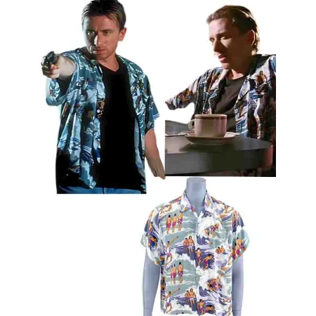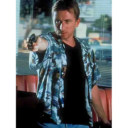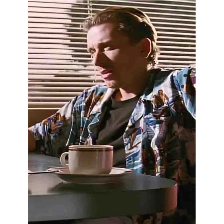 Channel classic '90s cinema style with the Pulp Fiction Tim Roth Blue Printed Shirt. This lightweight cotton piece pays tribute to one of the most memorable scenes in Quentin Tarantino’s cult masterpiece. Worn by Tim Roth in his portrayal of Pumpkin (Ringo), this printed shirt is both relaxed and retro—perfect for movie fans and street-style trendsetters alike.