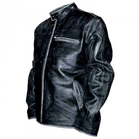 Driving out on the street, the hot Tom Cruise wears this jacket while riding a bike. It is a beautiful black leather jacket with dusty, distressed sleeves that gives you a unique, handsome look, so get this jacket now and look fabulous.