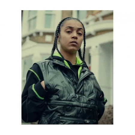 Top Boy Jaq Puffer Vest is an adaptation from Top Boy wear by Jasmine Jobson as Jaq. This is a parachute made vest, from the external side, that comes in stunning black color. An internal side has a different fabric, which is viscose, to make the external fabric more comfortable and light in weight. It will be easily put on or off within a minute just because of the presence of the zipper fastening closure on the front side. The pockets are present on the inner as well as outer sides, for your ease. A classical stand up style collar of Jaq Puffer Vest is designed in a small size, especially for women. Select the exact size to book an order asap!
