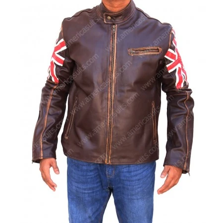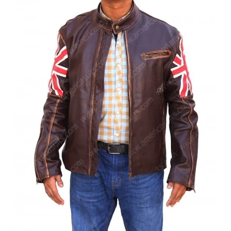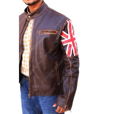 Item Description For UK Flag Cafe Racer Leather Jacket: