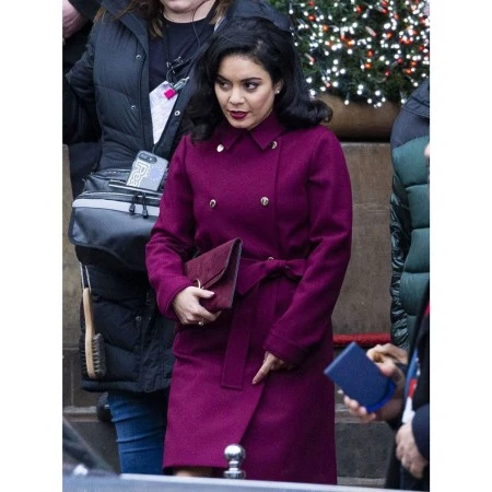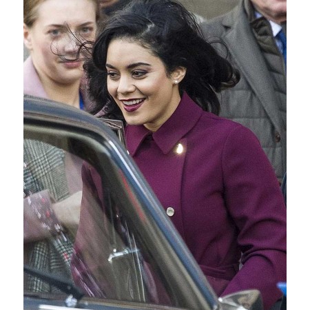 It really sounds boring to wear the same black or brown shades. Don't you think the same? Definitely yes, then grab the most hyped Vanessa Hudgens The Princess Switch Switched Again Coat, for yourself. Because it comes in an attractive purple color, looks totally different from the previously mentioned shades. Fabricated from a pure wool blend fabric as an outer shell covering. A golden color double-breasted closing of The Princess Switch Switched Again Coat, has become perfectly wrapped around your body with the help of an adjustable belt specification. A collar designed in a shirt style for some amazing styles. Sleeves are long and ended on open hem style cuffs. An internal feature includes a soothing viscose fabric, to make you feel comfortable.
