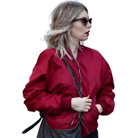 With bold elegance, the Vanessa Kirby Night Always Comes Red Bomber Jacket is crafted by the star from the highly anticipated upcoming 2025 thriller movie Night Always Comes, a style that many can't forget. This red bomber jacket combines easy-wearing fashion with cinematic flair, perfect for anyone wishing to say something without speaking.