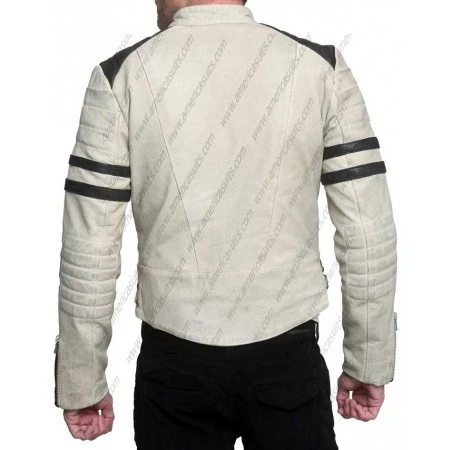 All of us have heard a lot about showing equal behavioral response while treating others but rarer of us would have experienced it because the blunt truth is no one gets an equally good response. So what is it actually that help people to earn respect and well-treated gestures from others?? Your answers might be money, high ranking incumbency and fame etc. Though these answers aren’t wrong because yes they do play some role in being respected by others yet the main thing which is mainly responsible for this is your appearance. Spare a minute and think would you be able to impress others with old worn out dirty clothes no matter how much dollars in millions you have in banks you would be treated on the basis of your presentation you have while greeting others. But not all have enough money to buy new attires each season over and over again. But now we have come up with the solutions to all your worries and presenting you with this Vintage White Motorcycle Riding Leather Jacket which is designed by keeping its sale price low and leather quality high to make it both accessible and durable for customers. It’s crafted in the perfectly modern way enough to give stylish look to the men who wear it. The Vintage White Motorcycle Leather Jacket is long lasting and professionally stitched jacket.