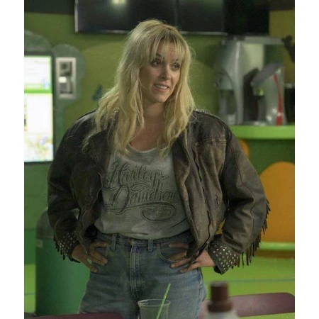 During this character, Maggie stylizes herself in this Vis A Vis El Oasis Macarena Ferreiro Leather Jacket. Its exterior side is made by using the real leather material, whereas the internal side covered with a soothing viscose lining. Macarena Ferreiro Jacket features a top-notch lapel style collar along with the detailing of silver studs. Not only this, the backside and open hem cuffs both have the same silver studs detailing. The long fitted style sleeves specified authentic style black and white color fringe design. An asymmetrical front zipper closing fastens more perfectly due to the adjustable belt present on the waist side. Other outer features of this Leather Jacket include two side zipper pockets and one chest pocket. Shortly, it holds all the features that allow you to dress up in a biker style.