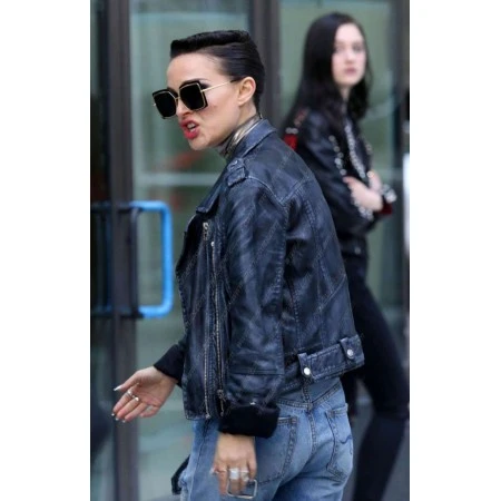 Here is the best chance for you if you really want to look stunning like Natalie Portman. Grab this Vox Lux Natalie Portman Black Leather Jacket and update to wardrobe collection by some trendy outerwear. This jacket is inspired by Natalie Portman. Natalie Portman is a wonderful actress in that regard she won many awards. This Vox Lux Leather Jacket will definitely help to groom your personality. The Natalie Portman Leather Jacket has straps on both shoulders. The front of the jacket has a double zipper closure for some uniqueness and two waist pockets to keep your essentials safe. The Leather Jacket has full sleeves with ribbed cuffs. The jacket is made up of with high-quality leather and perfect tailoring.