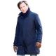 Modern-style, clean buttoned strap cuffs enhance its refined appeal, featuring two side waist pockets joined by an additional inside pocket, which suits the necessities just fine. The deep navy color pairs well with anything in your wardrobe, from denim to tailored pants, making it a most classic and versatile choice. A classic example of mid-thigh length, its full-length, fitted sleeves offer a certain balance to the coat's sharp yet comfortable silhouette.