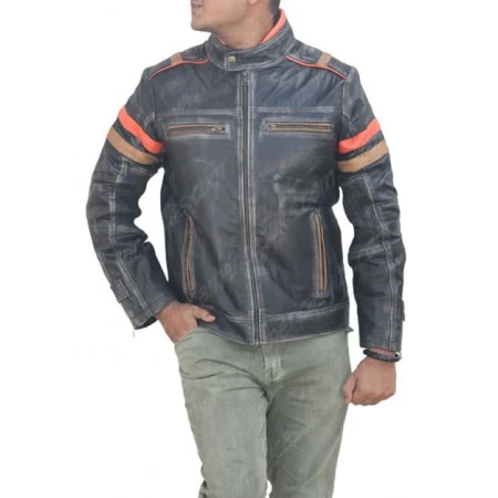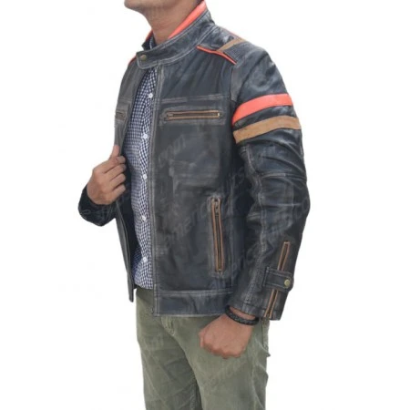 This Eurovision jacket is made from genuine distressed leather. It has a stripe of different colours on the shoulder and biceps, which is its unique feature. The Black Jacket has a snap tab collar and a branded zipper closure on the frontage. There is stitched detailing on the jacket to increase its durability. Zipper cuffs and long and fitted sleeves of Will Ferrell Jacket are designed according to the present fashion style. The inner side of the Black Leather Jacket is adequately covered with a viscose lining to absorb all the sweat of your body. Outer zipper pockets are also present on the chest side.