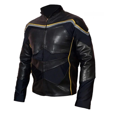 Will Smith Hancock Leather Jacket! Crafted from high-quality genuine leather or faux leather, this stylish jacket comes in classic black and features two inside pockets, an erect collar design, and a YKK zipper-style closure. The inner of the jacket is lined with a soft and comfortable viscose fabric as well as yellow and grey lining on the front. The full-length sleeves have open hem cuffs for a classic finish.