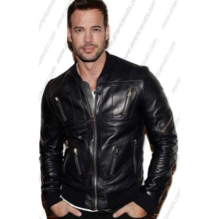 The handsome hunk William Levy is a stylish man with a masculine personality to charm every seeker. This man is also an epitome of style and fashion as an actor as well as a model. The representative of Cuban-American, William Levy has much success on his plate. Many of the men happily adopted his stunning style to look as handsome as he is. We are bringing stylish and lustrous William Levy Black Leather Jacket, inspired by outwear of William Levy. This is a perfect piece of apparel to charm everyone around you and looks stunning. This stylish jacket has extravagant detailing with the golden zipper which is a signature design of this apparel. The jet black jacket has small round collar. The front has golden zipper closure which does not only look alluring but also fire up in the cold weather. Long sleeves have zipper cuffs with the two marvelous golden zipper pockets on the part of forearms. Asymmetric chest pockets have a golden zipper closure. The waist pockets are a replica of the chest pocket which balances out the things. A twin pleated streaks are located above the chest pocket which enhances its charm. Overall, this William Levy black leather jacket calls masculinity, strength, and boldness.