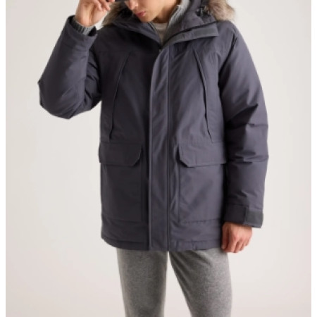 Charcoal Grey Hooded Parka Jacket with Fur Trim