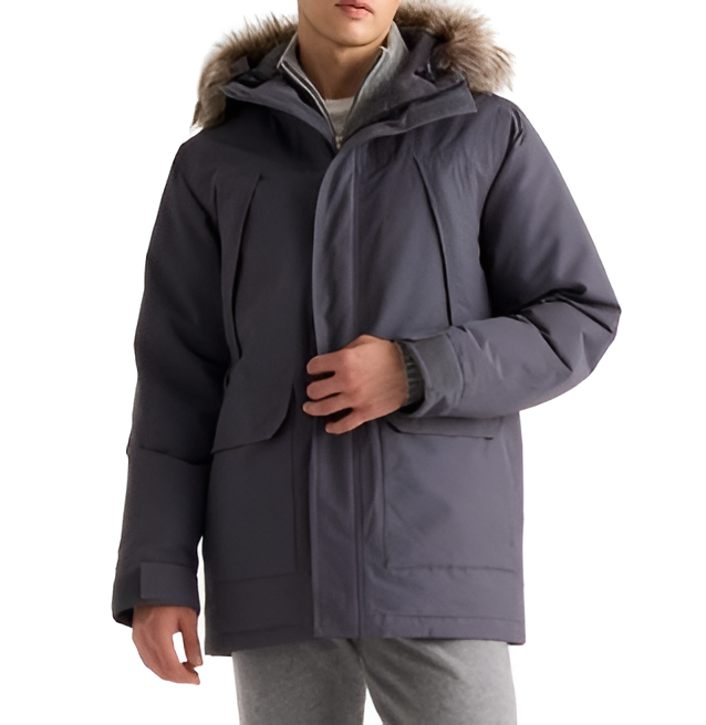 The Winter Parka Jacket with a fur hood, charcoal-grey, is designed for the rare individuals who appreciate quiet confidence and conscious dressing and would therefore fit seamlessly into a smartly put-together winter wardrobe. You can wear this jacket around the city, on morning commutes, on evening strolls, and on winter weekends, and it gives utmost importance to comfort, protection, and understated elegance.