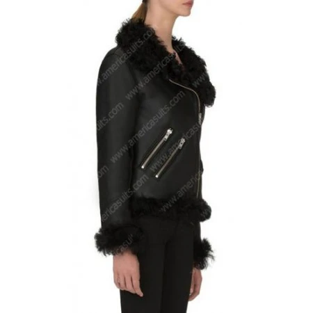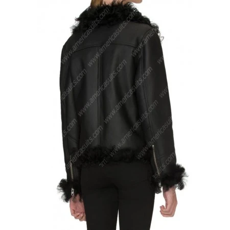 Grab this Women Biker Winter Shearling Jacket and enjoy bike riding in the winter season. This Biker Winter Shearling Jacket is made of high-quality leather with inside warm fur fabric to keep you safe in the winter season. The Black Biker Asymmetrical Jacket has two asymmetrical zipper pockets on the waist. Its black color will give you a more impressive look in the whole crowd. Its shearling collar and cuffs add a more lavish touch to your already stylish personality. So place your order and get this black winter shearling jacket. See more